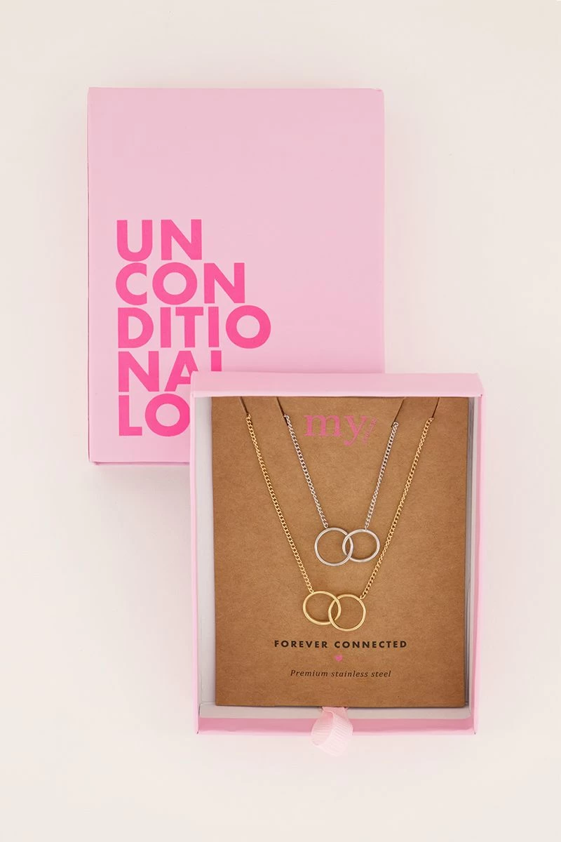 Blijf verbonden met elkaar met deze kettingen set van onze forever connected collectie. Zet jouw lievelingspersoon in de belangstelling en geef deze leuke ketting als cadeau, wie ga jij verrassen?