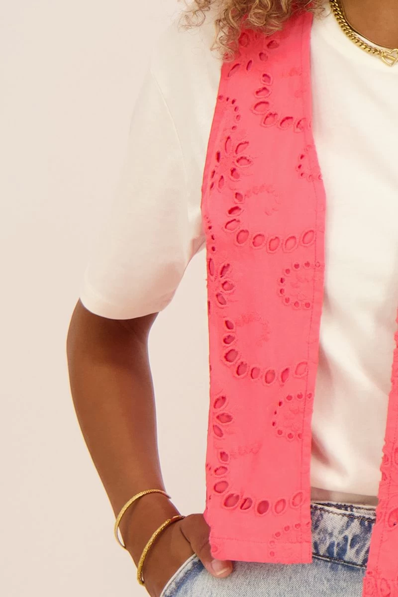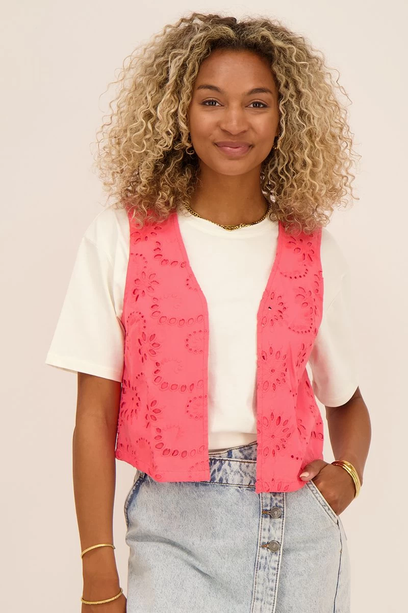 Forget less is more, this season we’re going for floral crochet! Met dit koraal gilet met crochet geef je een nieuwe dimensie aan je outfit. Geen saaie look meer met dit leuke kledingstuk, draag over een oversized T-shirt of een jurkje voor een touch of colour. Wij zijn fan!