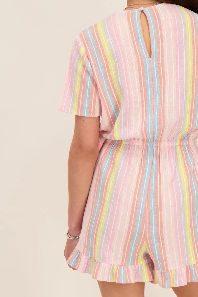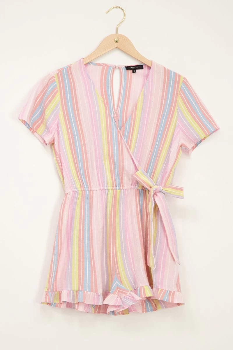 O happy days! Met deze blauw gestreepte playsuit straal jij positiviteit en zelfverzekerdheid uit. Wandel over de leukste boulevards met dit leuke kledingstuk, of spring met gemak in deze playsuit bij een dagje aan het strand. This is your day, hoe ga jij dit item stylen?