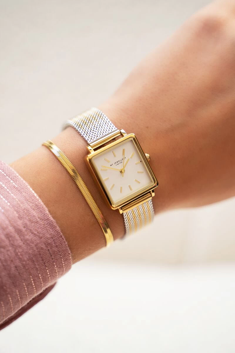 Yes! Wij zijn helemaal fan van dit horloge. Door de multikleur schakels & lichte wijzerplaat is dit horloge makkelijk te combineren met je andere sieraden en door het strakke design past het overal bij. Ook leuk om dit item cadeau te geven. Shoppen maar!